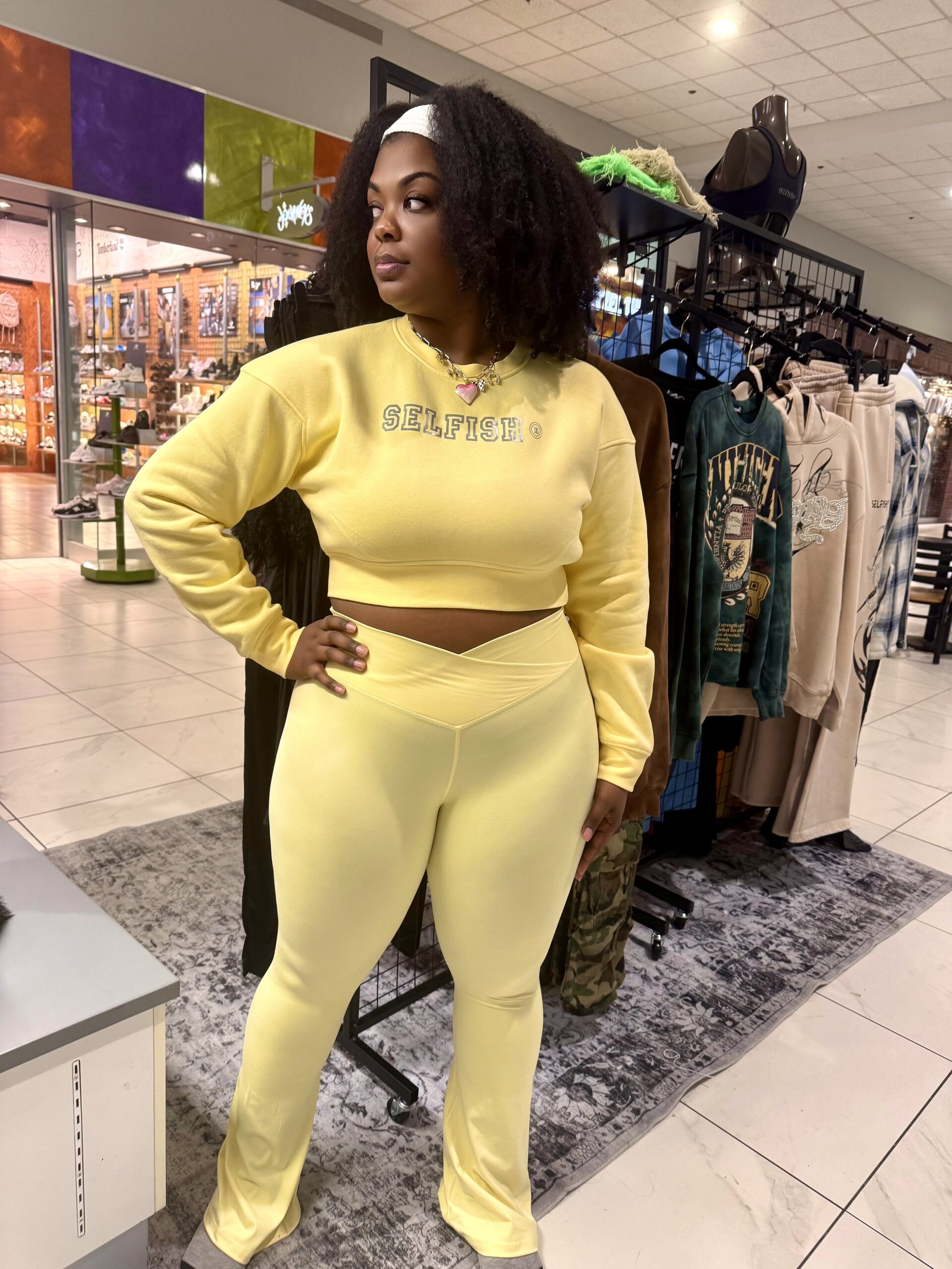 Candy Cropped Sweatshirt $52.99 Color Choose an optionLight BlueMagentaYellow Size Choose an optionSmallMediumLargeClear Candy Cropped Sweatshirt quantity Add to cart SKU: N/A Categories: Athletic Sets, New Arrivals, Separates, Shop All, Tops Tags: Accessories, apparel, atheleisure, athleisure, athleisurewear, athletic dresses, crop, crop top, exercise, Fashion, fitness, fleece bra, leggings, lounge set, street, streetwear, Two-piece set, workout Additional information Additional information Color Light Blue, Magenta, Yellow Size Small, Medium, Large Related products Sale! Faded Fleece Bralette $32.99 Original price was: $32.99.$19.99Current price is: $19.99. Select options Mellow Flannel Shacket $129.99 Select options 3 Waist Beads $45.00 Select options The Ultimate Sports Bra $34.99 Select options « Membership End Baddie Fur Jumpsuit »